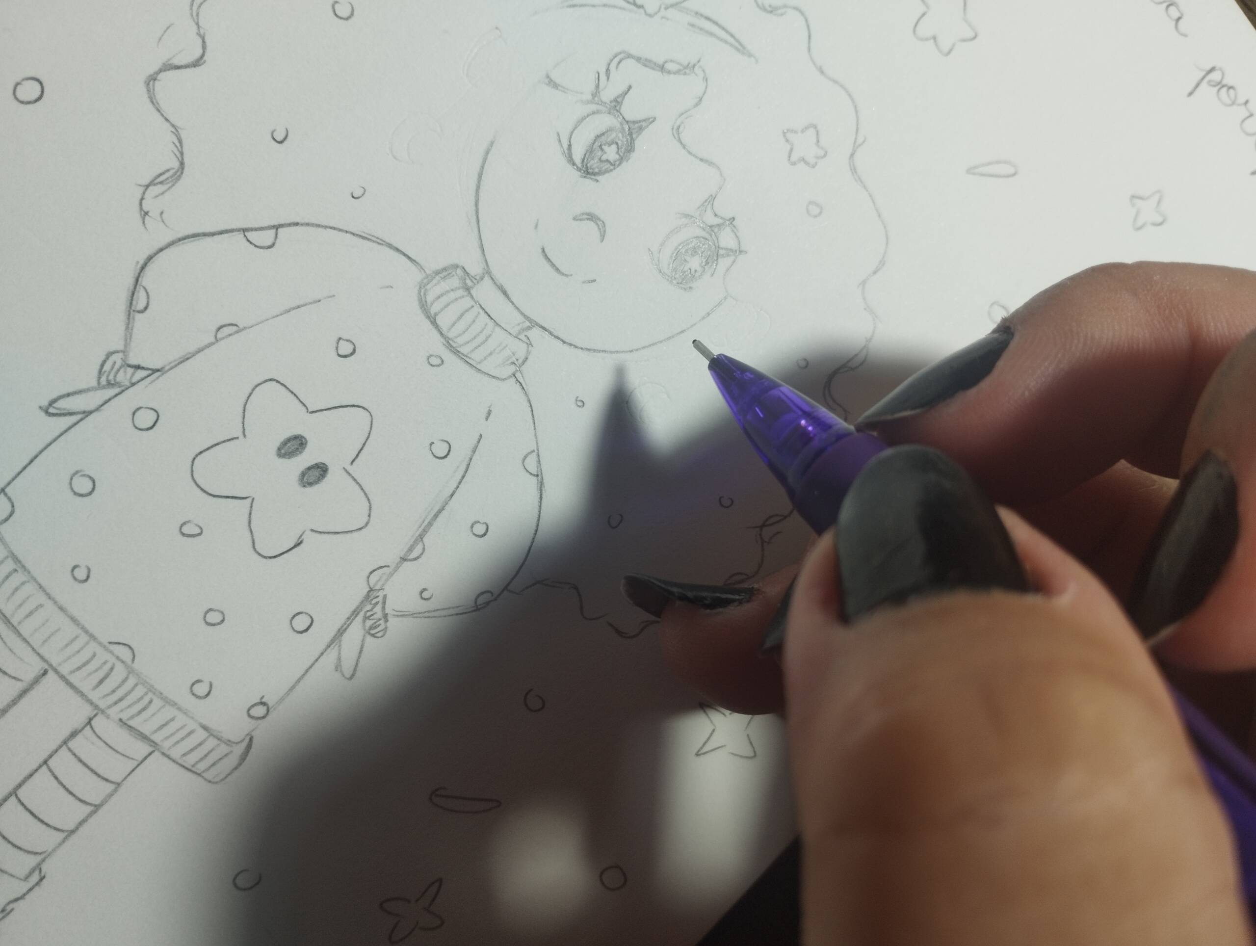 Fiquei reclusa por muito tempo e isso só colaborou para a minha explosão criativa e para a minha reflexão em relação à minha arte. Durante muito tempo, eu me senti muito inferior a outros artistas. Eu sempre achava que a minha arte era errada, que meus traços eram estranhos ou que meu olhar era limitado demais. Também achava que meu jeito de fazer não era o jeito “certo”. E quando a autossabotagem se instala, tudo parece ecoar esse pensamento: “Pra que continuar?”
